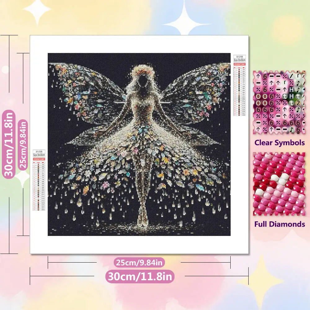 Skapa ett förtrollande konstverk med denna diamond painting som föreställer en graciös dansare omgiven av ljus och fjärilar. Ett motiv fullt av rörelse, elegans och magisk stämning som ger ditt hem en konstnärlig och drömlik känsla.